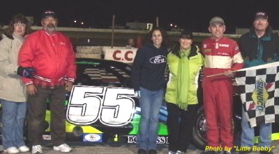 The last caution came out on lap 80 which tightened the cars up, and Walters had to give it his all to keep in front of the 77 of Hester who was running a faster Hoosier tire, and Walters stayed smooth and finished the race in first place and leading all 100 laps. Hooters Pro Cup driver Billy Bigley Jr (Naples, FL) had some early car problems and pitted once but made it back up to fifth. Coming in third was hot shoe B.J McLeod of Wauchula and fast qualifier Scott Grossenbacher ran out of time and would have to settle for fourth.